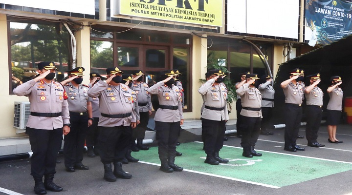 Kenaikan pangkat tersebut dilaksanakan terbagi dua sesi yaitu melalui virtual zoom dan pelaksanaan apel kenaikan pangkat di halaman polres metro jakarta barat
