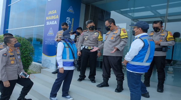 Jawa Barat Sergapreborn Kapolda Jabar Irjen Pol. Drs. Suntana M.Si melaksanakan pengecekan arus lalu lintas dan kepadatan jalan serta pelaksanaan one way di KM 70 Kantor Jasa Marga, Gerbang Tol Cikatama, Sabtu (30/4/2022).
