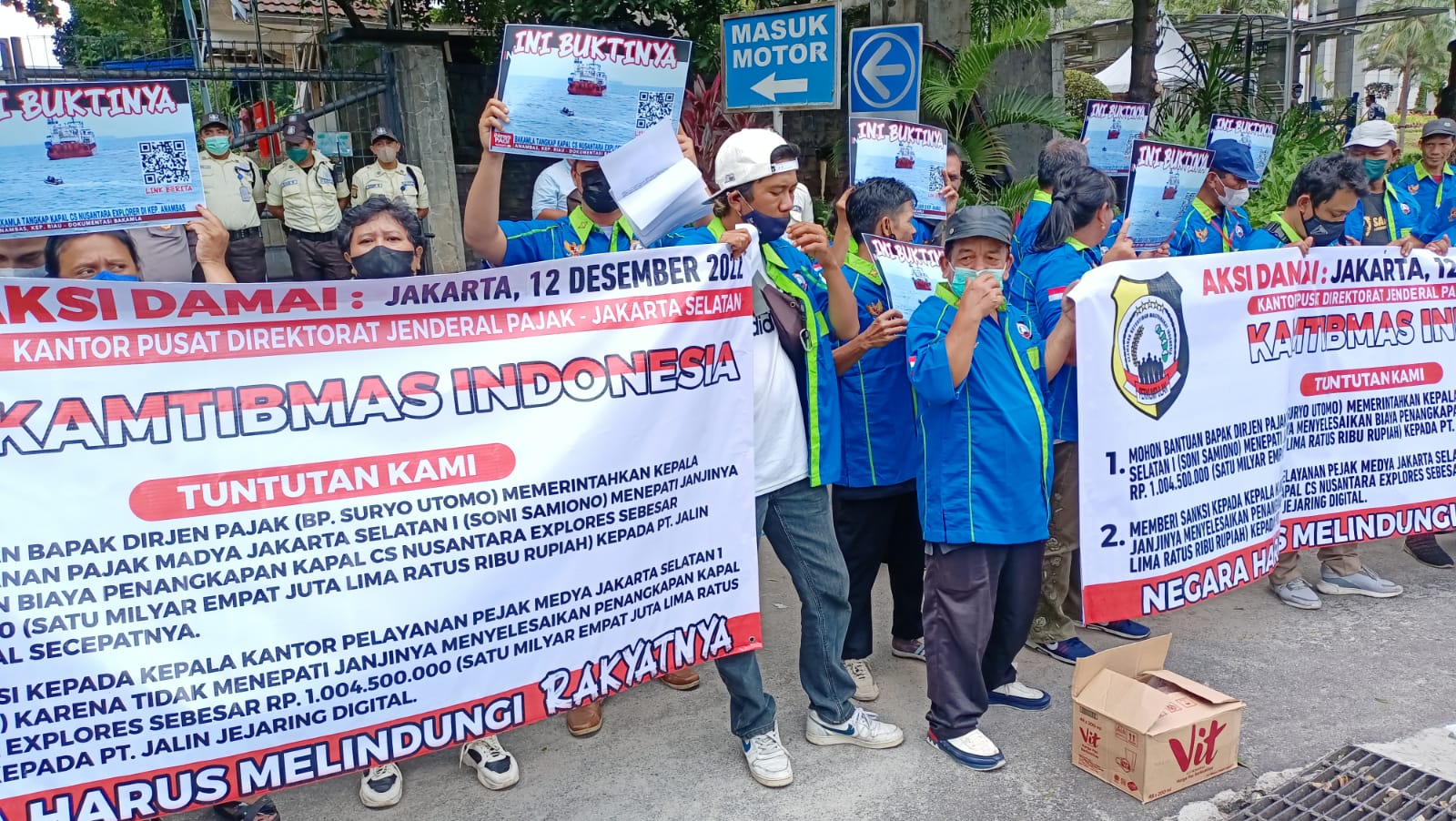 Mereka menuntut pihak Direktur Jenderal Pajak untuk memberi sanksi kepada Kepala Kantor Pajak Madya Jakarta Selatan yang tidak bisa menyelesaikan biaya penangkapan Kapal CS Nusantara kepada PT Jalin Jejaring Digital sebesar 1 Miliar lebih.