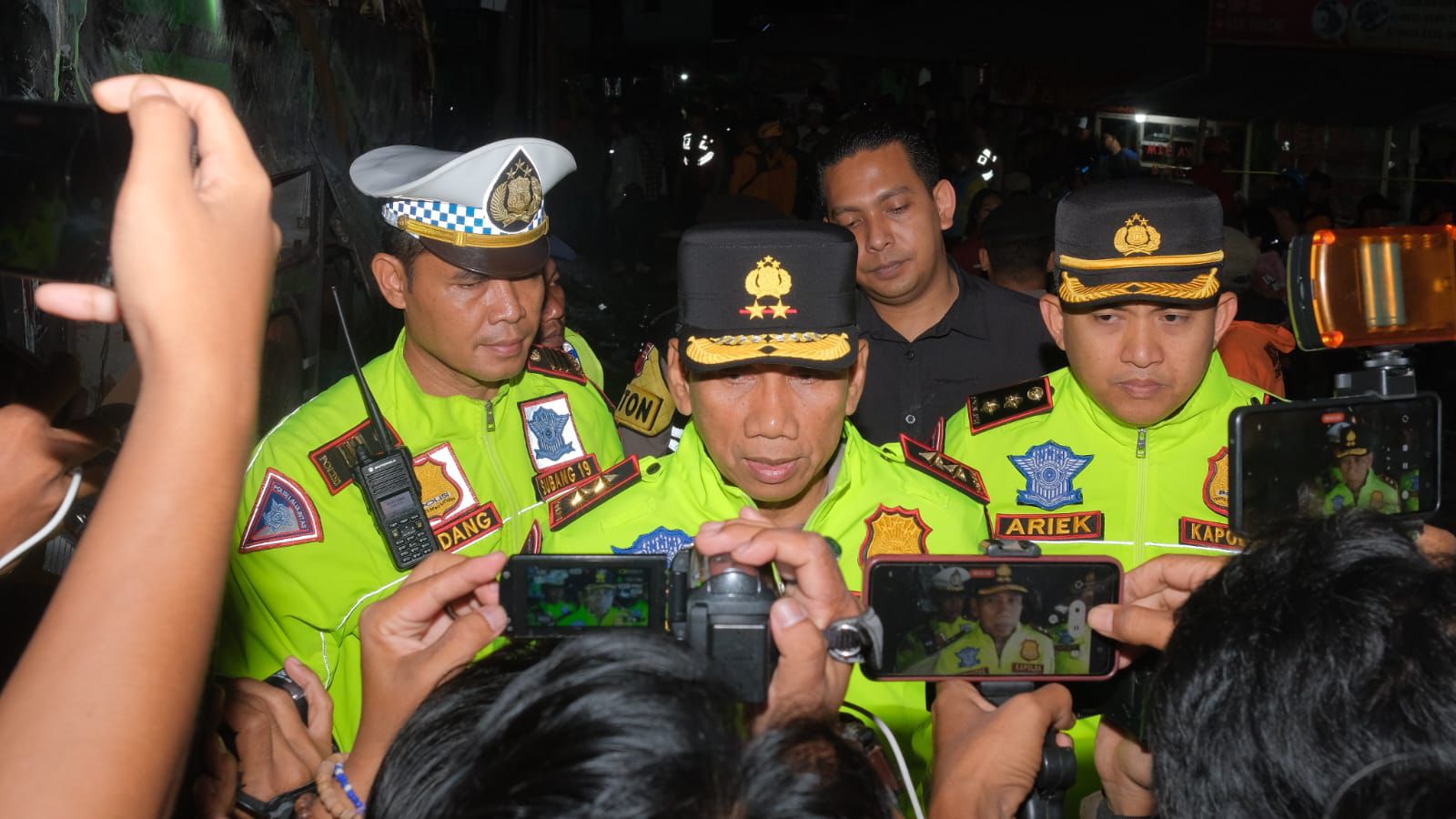 Sergapreborn Subang Kapolda Jawa Barat Irjen Pol. Akhmad Wiyagus meninjau lokasi kecelakaan di Jalan Raya Desa Palasari, Kecamatan Ciater, Subang, Sabtu malam (11/5/24)