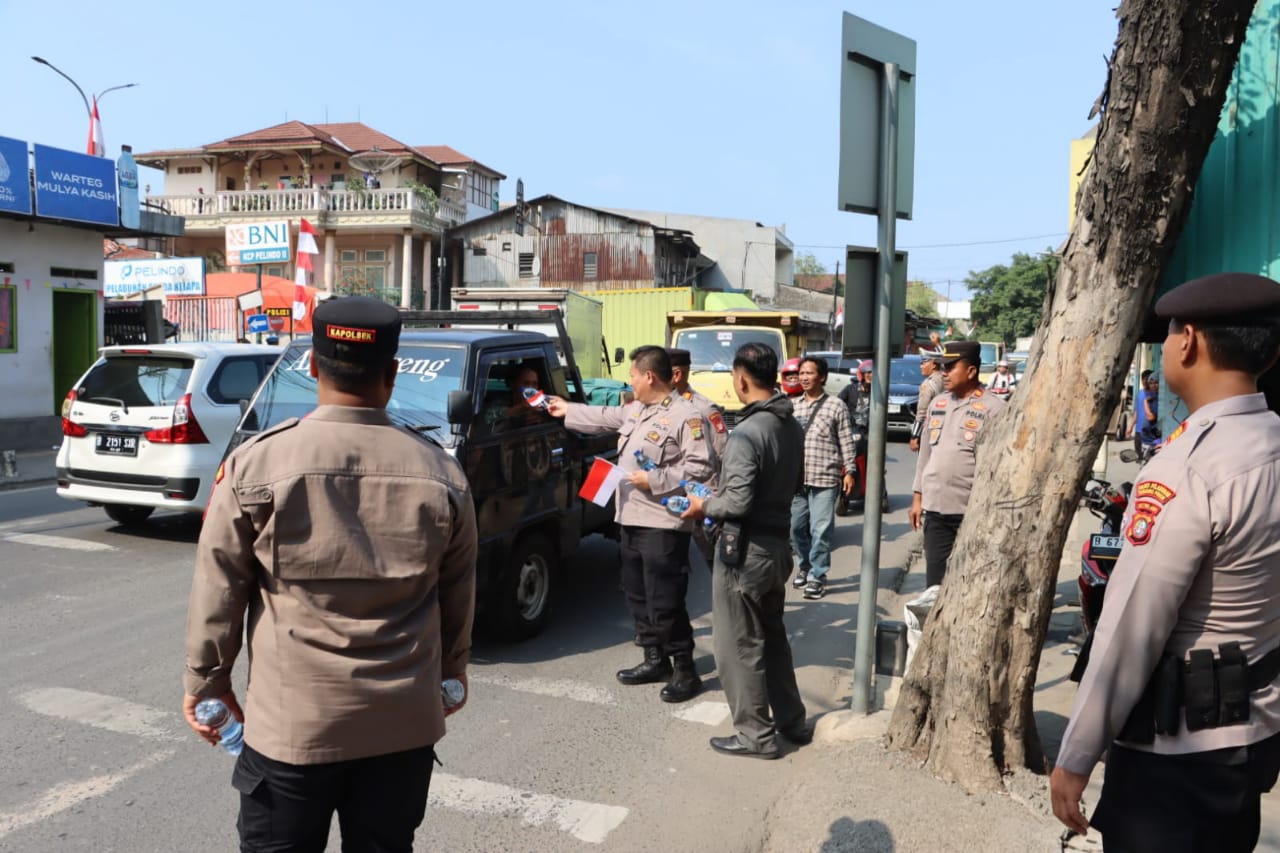 Kapolres Pelabuhan Tanjung Priok Bagikan Bendera Merah Putih, Ajak Masyarakat Kobarkan Semangat Nasionalisme
