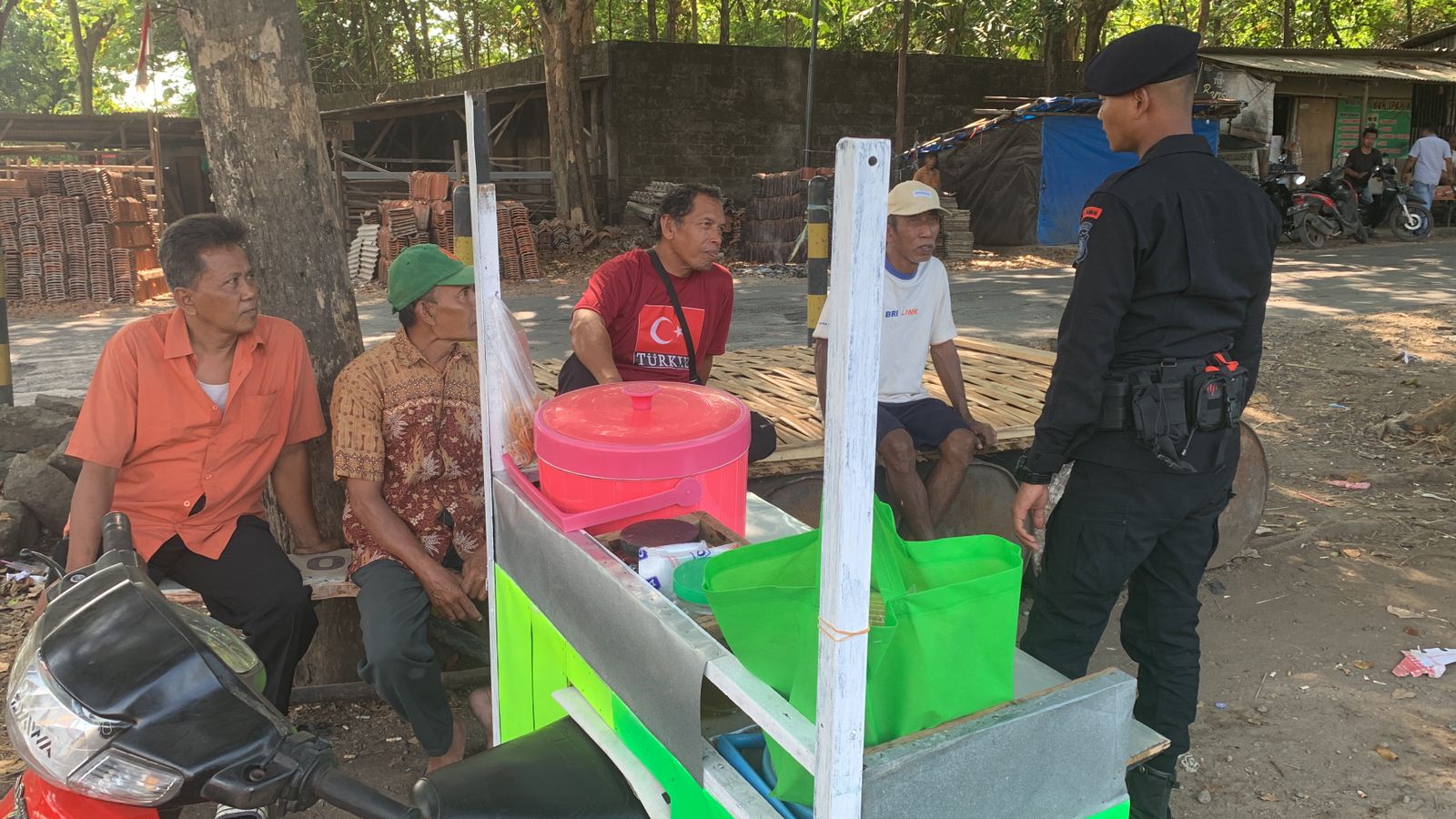 PATROLI SAT BRIMOB POLDA JABAR SAMBANGI WARGA YANG SEDANG BERKUMPUL BERIKAN PESAN KAMTIBMAS