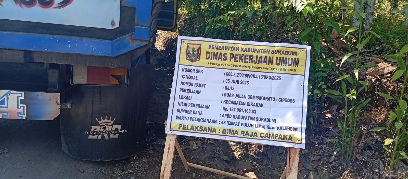 Pantauan di lapangan perbaikan jalan tersebut dilaksanakan oleh pelaksana CV.Bima Raja Campaka dengan Nilai proyek Rp. 187.061.168 dan mulai di kerjakan mulai 5 juni 2025 telah seratus persen tercapai