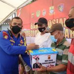 Sesaat sebelum pimpin Vicon Wakapolda Jabar, menuju ke Amphiteater Grage City Mall membagikan paket sembako kepada masyarakat dan lansia yang sudah divaksin.