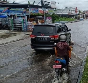 Berdasarkan pantauan Sergapreborn di Jalan Temanggung Tilung, Kelurahan Menteng, Kecamatan Jekan Raya, genangan air dengan kedalaman bervariasi ini menggenang hingga jarak kurang lebih satu kilometer.