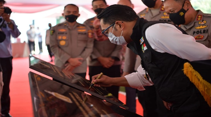 Sergapreborn Kota Bandung Gubernur Jawa Barat Ridwan Kamil meresmikan empat aset yang renovasi milik Polda Jabar. Keempatnya direnovasi menggunakan dana hibah Pemda Provinsi Jawa Barat.