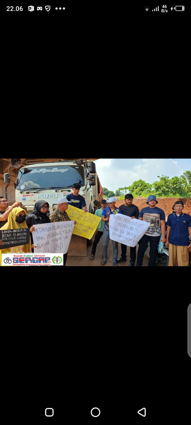 Menurut Nia, kondisi di lapangan menunjukkan proyek Tol Japek 2 Selatan telah berjalan masif, mulai dari pengurukan, pengaspalan, hingga pengecoran. Namun, ironisnya hak warga sebagai pemilik lahan belum dipenuhi.