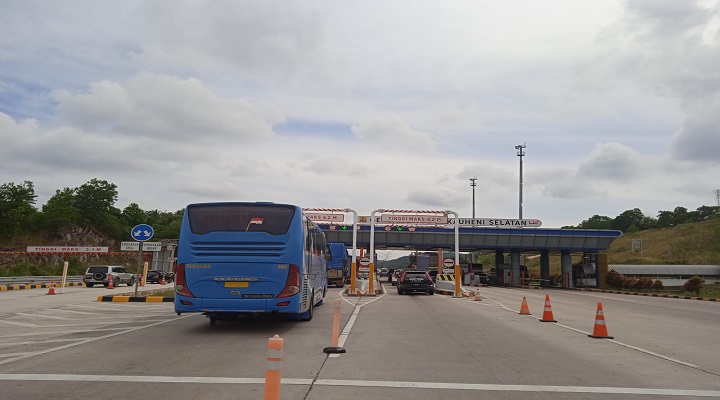 Pantauan awak Media di Gerbang Tol Bakauheni Selatan, ratusan kendaraan roda empat dari Jawa yang menuju Sumatera baik itu mobil pribadi, bus dan truk angkutan logistik mulai ramai, namun tidak sampai menimbulkan kemacetan di gerbang utama jalan tol tersebut.
