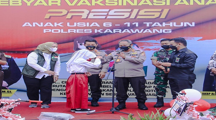 Kapolda Jabar menjelaskan tinjauan Ini dalam rangka memastikan kegiatan percepatan vaksinasi bagi anak di Kabupaten Karawang dan sebagai langkah pencegahan penyebaran virus covid-19.