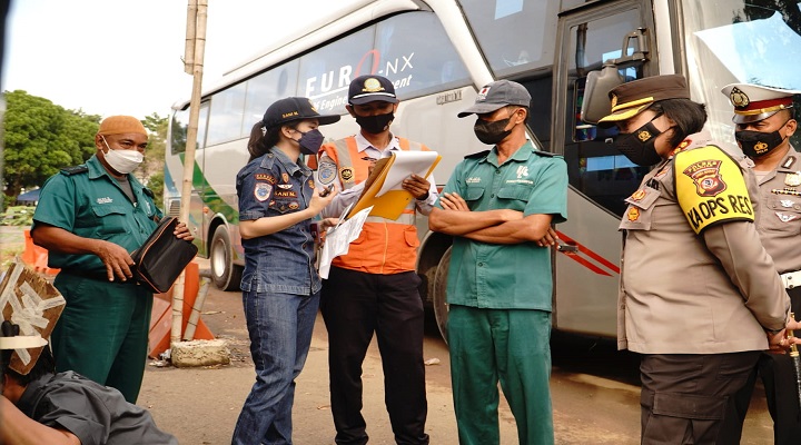 Sergapreborn Kota Banjar – Polres Banjar Polda Jabar – Menjelang Operasi dalam rangka Hari Raya Natal 2021 dan Tahun Baru 2022 (Ops Nataru), Kapolres Banjar AKBP Ardiyaningsih, S.I.K.,M.Si. Bersama Kadishub Kota Banjar, Kabid Lalin Dishub Kota Banjar, Kasat Lantas, serta Para Perwira dan Personel satuan Lalu Lintas Polres Banjar melaksanakan ramchek atau uji laik jalan kendaraan di terminal Bus Kota Banjar. (17/12)