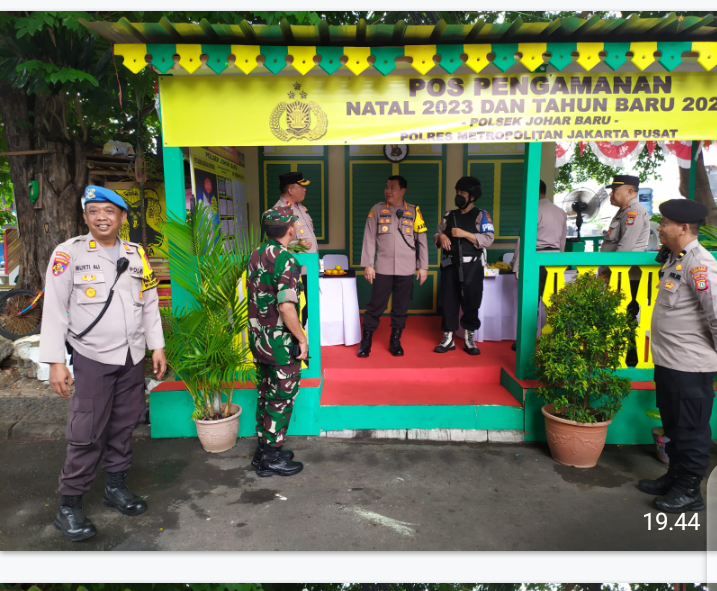 Sergapreborn Jakarta –Kapolres Metro Jakarta Pusat Kombes. Pol. Susatyo Purnomo Condro,S.H,S.I.K,M.Si., beserta Waka Polres Metro Jakarta Pusat Akbp. Anton Elfrino Trisanto, S.H., S I.K., M.Si., Kabag Ops Polres Metro Jakarta Pusat Akbp. Singgih Hermawan, S.I.K., dan Kasie Propam Polres Metro Jakarta Pusat Akp. Mukti Ali, SH., melaksanakan kunjungan ke Pos Pengamanan (Pos Pam) Natal 2023 dan Tahun Baru 2024 di Polsek Johar Baru.