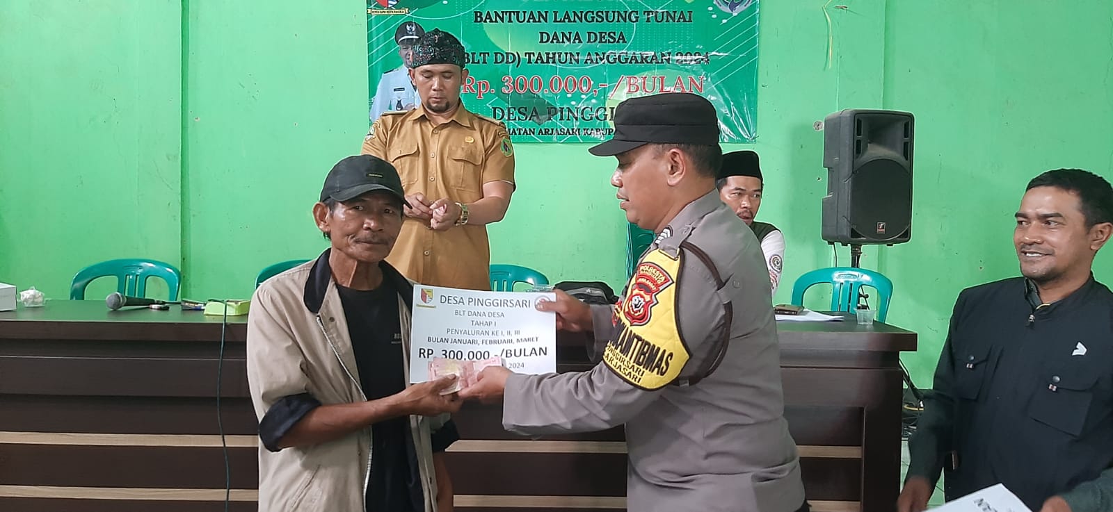 Sergapreborn Pameungpeuk-Bhabinkamtibmas Polsek Pameungpeuk Polresta Bandung Polda Jawa Barat Bripka Asep Budi bantu awasi sekaligus Penyaluran Bantuan Langsung Tunai ( BLT ) Di Desa Sukasari Pameungpeuk Kabupaten Bandung, Senin (27/5/2024)