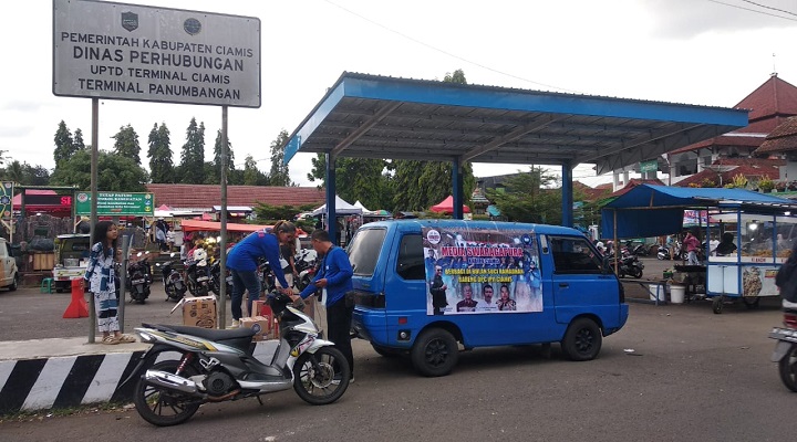 Ciamis Sergapreborn 24/4/2022 Suasana Sore hari di kawasan Terminal Panumbangan Di IPJi Ciamis berbagi Takjil sehingga begitu ramai apalagi menjelang berbuka puasa ada yang berbeda di sore kemarin sejumlah kendaraan melambat saat sejumlah orang menghentikan kendaraan untuk memberikan takjil buka Puasa ke pengguna jalan dan masyarakat yang lewat pada Hari sabtu 23/4/2022.