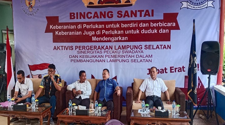 Simposium, yang digagas Ketua LSM GMBI Distrik Lamsel Heri Prasojo, S.H ini mengusung tema “Keberanian diperlukan untuk berdiri dan Berbicara, Keberanian juga diperlukan untuk duduk dan mendengarkan”. Bincang Santai terkait kinerja Pemerintah Kabupaten Lampung dalam perspektif, Tokoh Masyarakat dan Aktivis Pergerakan Lampung Selatan”.