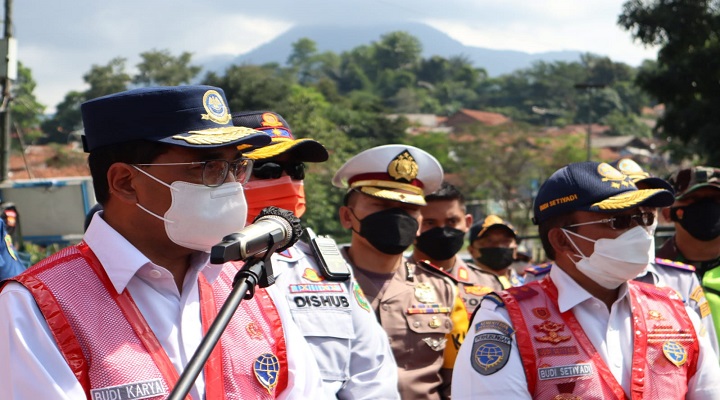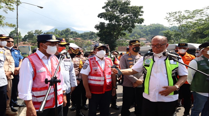 Kabupaten Bandung Sergapreborn Nagreg – Menteri Perhubungan Budi Karya Sumadi meninjau jalur mudik Lebaran Tahun 2022 di Pos Cikaledong, Nagreg, Kabupaten Bandung, Jawa Barat.