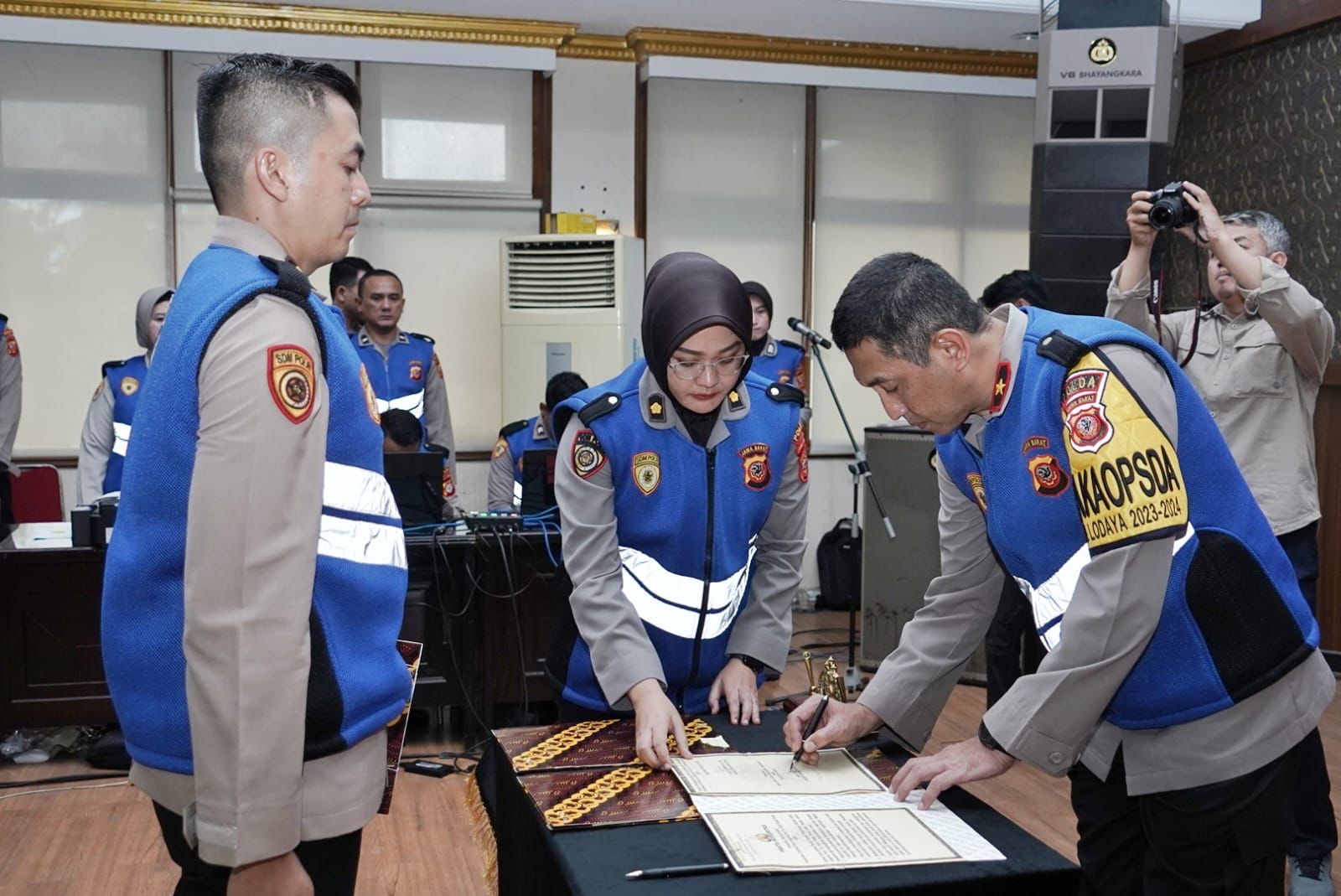 Sergapreborn Bandung Wakapolda Jabar Brigjen Pol. Bariza Sulfi memimpin kegiatan pengambilan sumpah dan penandatanganan pakta integritas bagi calon anggota Polri tahun anggaran 2024. Acara tersebut dilaksanakan di Polda Jabar dan diikuti oleh Pejabat Utama Polda jabar serta perwakilan calon anggota Polri dan perwakilan orang tua, Jumat (19/4/2024).