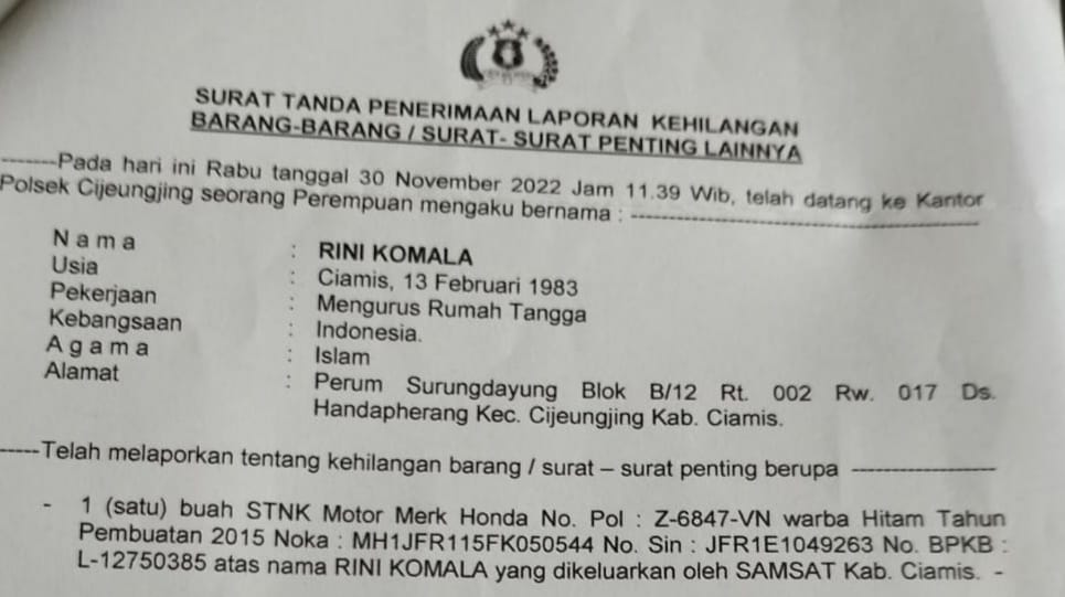 Dengan kejadian tersebut Rini melaporkan ke pihak kepolisian sektor cijeungjing